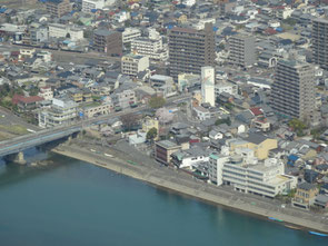 寅さんのバイが行われている長良川まつりの俯瞰。